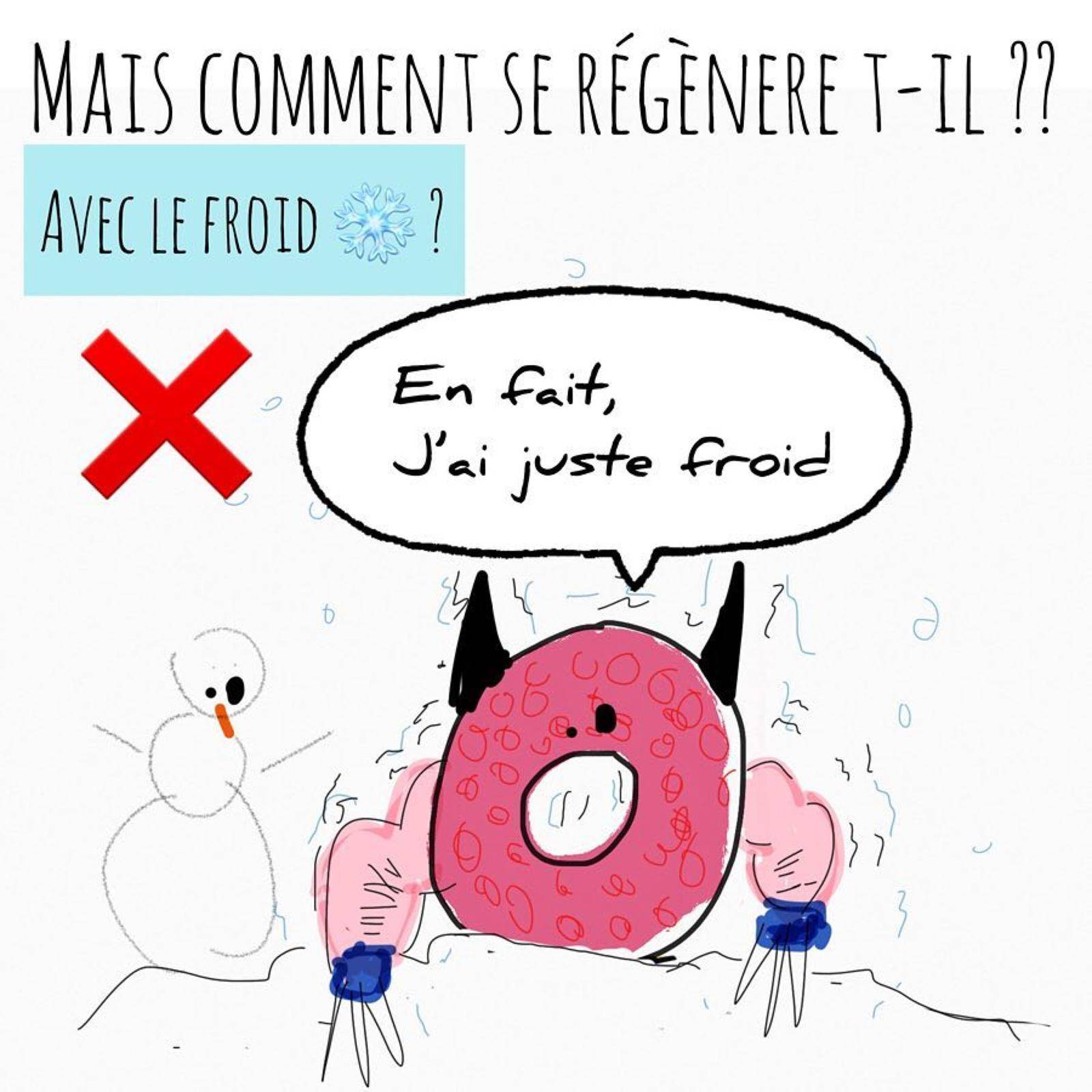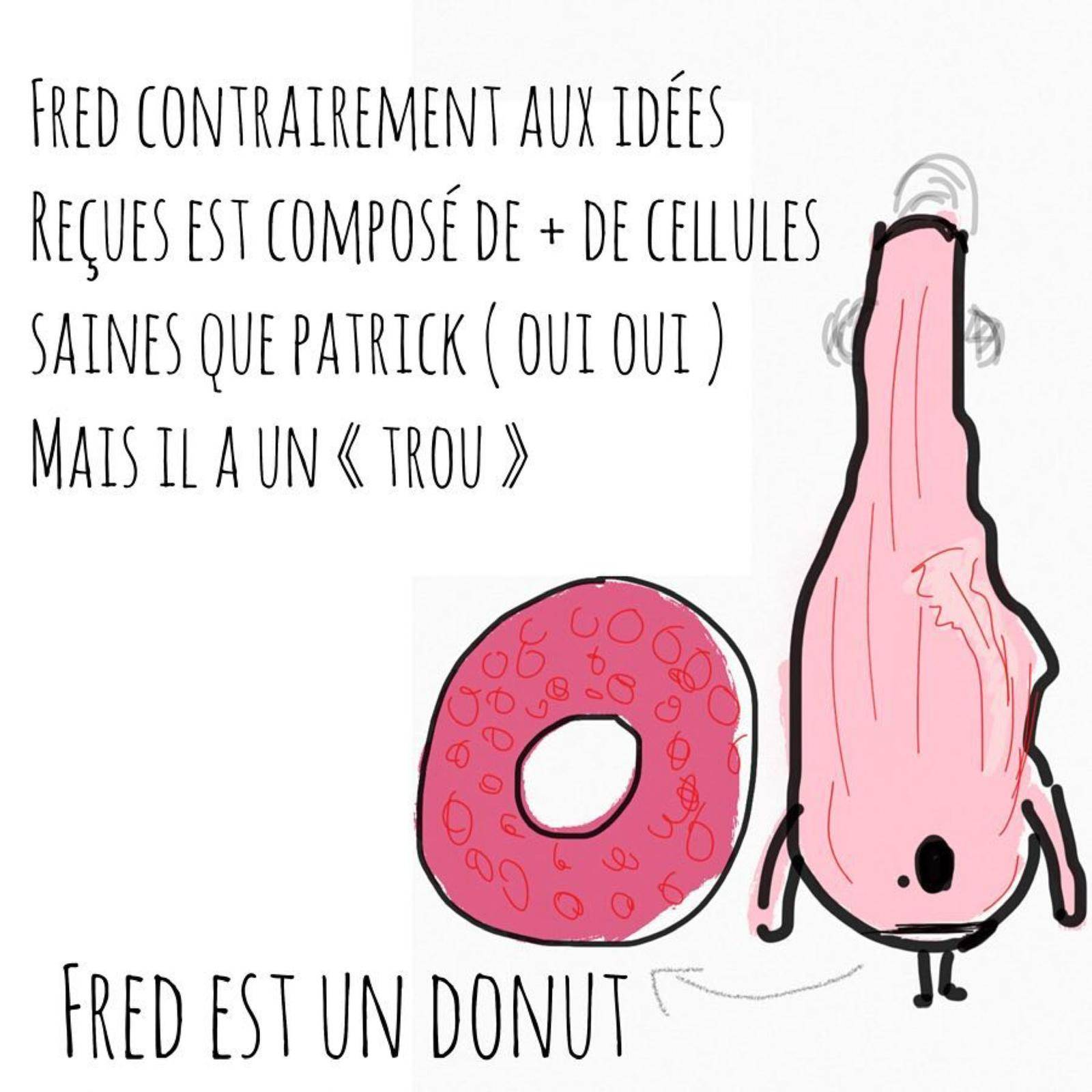 Fred est composé de cellule morte ( le trou ) et de cellulles vivantes, la chair du donut .