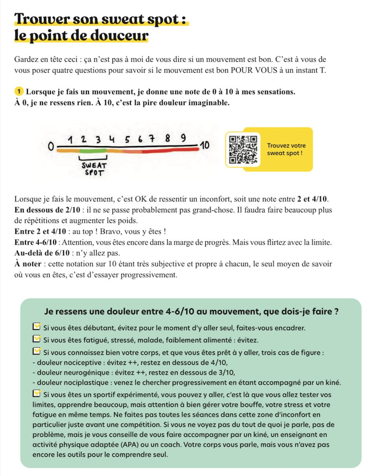 REGLE 1 BIS : PAS DE DOULEUR supérieure à 3-4/10 lors de l'exécution du mouvement